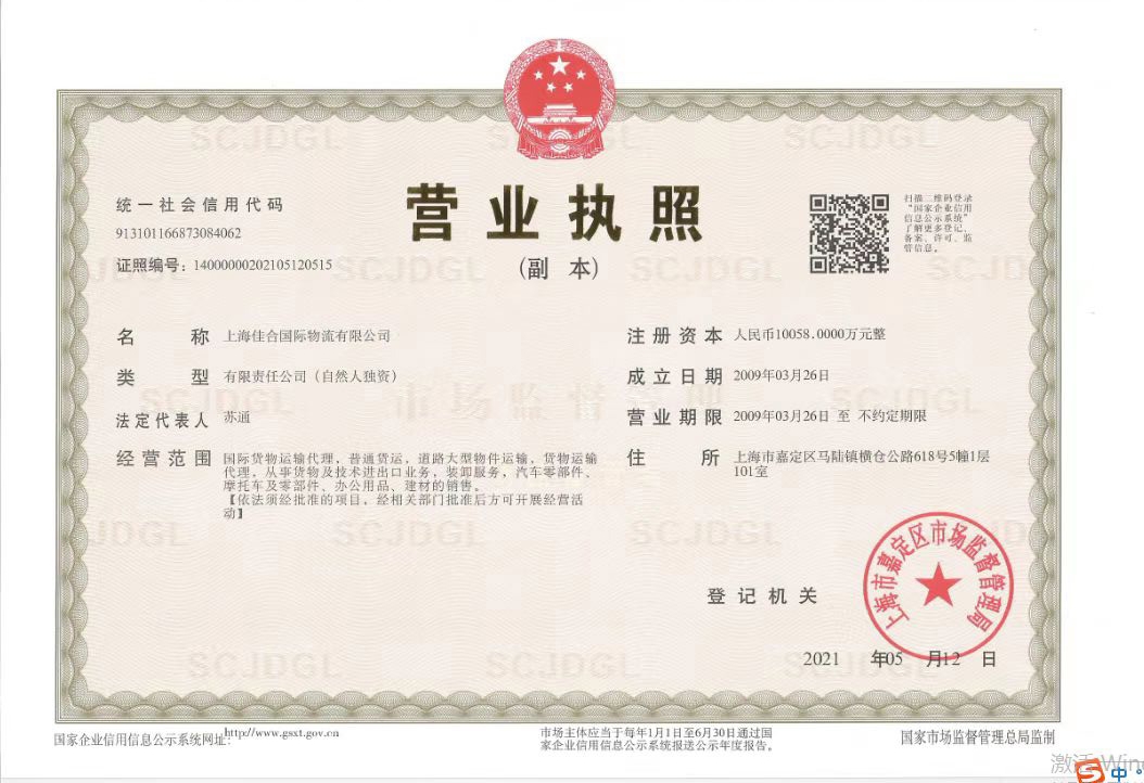 【标题】上海佳合国际物流有限公司注册资本10058万,大型货物运输资...查看详情>>>